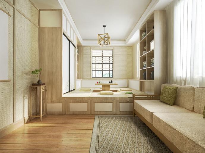 Furniture khas Jepang kental dengan warna kayu, bamboo, dan rotan. Tidak banyak pola, konsisten dengan kesederhanaan bentuknya. Dibandingkan dengan penggunaan sofa atau kursi besar, furniture Jepang lebih cenderung berupa bantal atau alas duduk yang diletakkan di lantai.