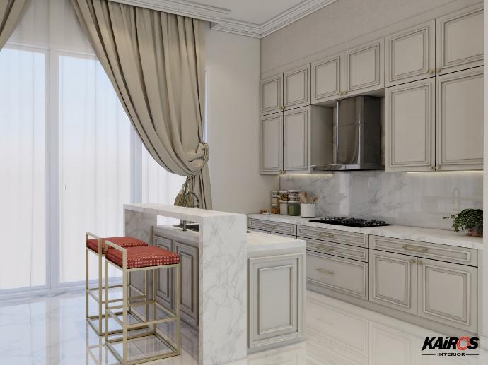Gaya Modern yang lebih inovatif, menekankan pada suasana yang menggambarkan masa depan yang penuh dengan teknologi canggih. Biasanya material yang digunakan berwarna putih, perak, atau penuh dengan kaca serta garis-garis tegas.