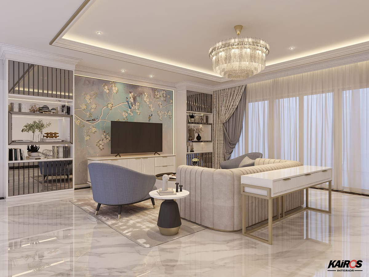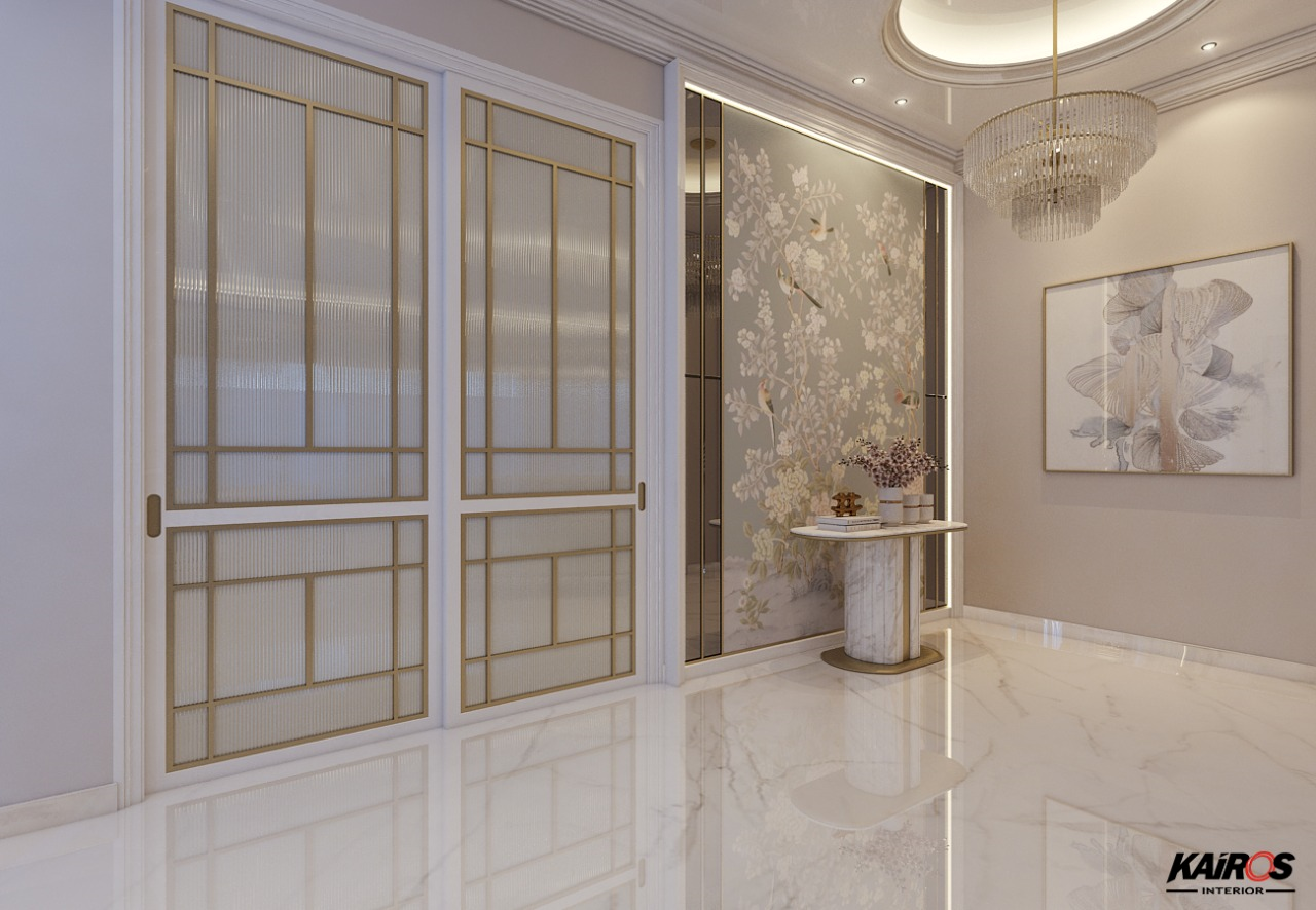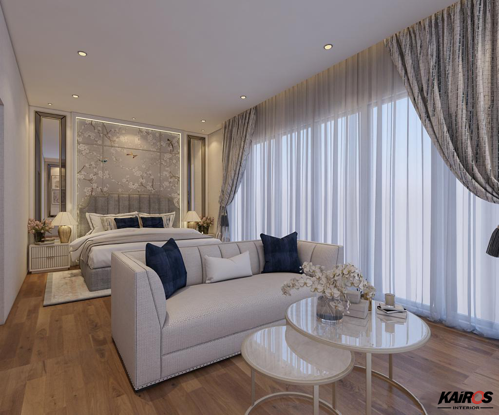 Pada lantai dengan menggunakan Vinyl kayu membuat ruangan terkesan lebih lebar dan luas. Penggunaan gorden atau tirai besar pada jendela untuk memberikan kesan ruang vertikal yang lebih tinggi.